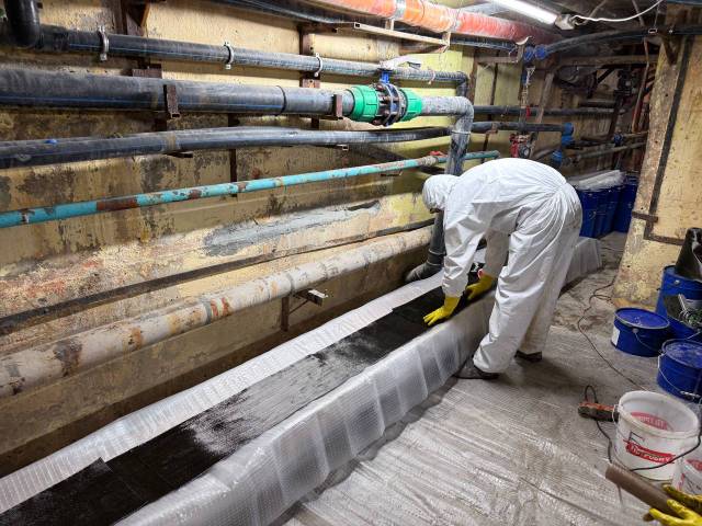 На участках с постоянными протечками выполнены работы по нанесению проникающей гидроизоляции: